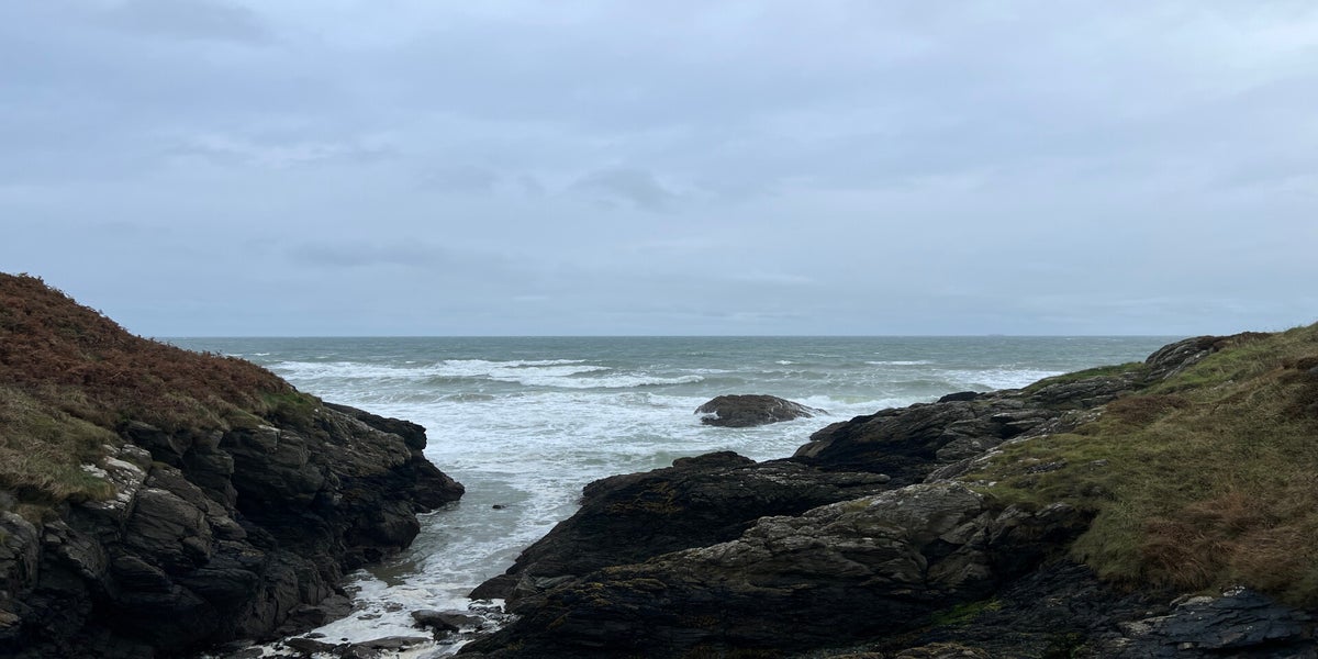 The beach here was visited by kayakers from Cemaes, some we helped unload their kayaks, although the rough sea made their journey tough it seemed nothing compared to the climb out of the valley for us. A narrow path so close to the cliff edges had us all treading very carefully. One photo is taken from the path looking down on the beach.