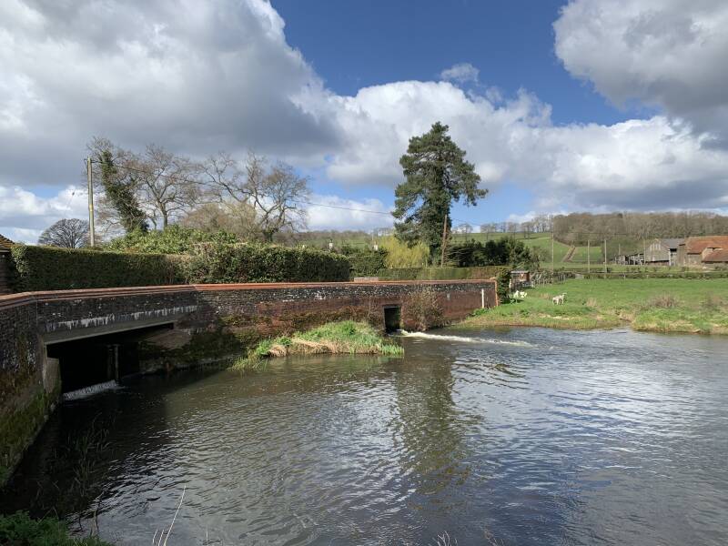 Cross the lane and enjoy the view as the river gushes out of the old mill bridge into a pool beyond. A nice spot to spend a moment or two looking at some ornamental animals and for birds and the open fields often grazed by real farm animals. Turn left along the lane, over the bridge then cross the road at the T junction and join the narrow path up the grass bank on the left. Follow this path along the side of the lane until you reach some cottages and turn right onto a bridleway. In spring you may see lambs in the fields here, possibly swallows from the local stables, goldfinches and crows. The sides of the path will have the stitchwort, celandine and other flowers in spring.
