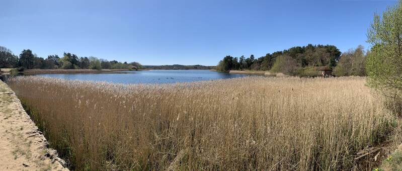 From the main Great Pond car park at Frensham walk down towards the water’s edge and turn right along any convenient path. Follow the water’s edge as best you can, as far as you can. There will be some views across Frensham Great Pond, a few little patches of phragmites reeds and over to your right some heathland managed for sand lizards, one of our rarest reptiles. The path gets a bit more enclosed as you walk along and watch for butterflies, dragonflies and birds all the way.