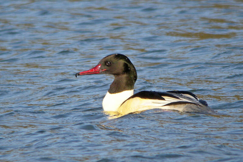 At the lane turn left, pass the driveway on the right and before the road bends sharply left take the first footpath through the gate on the right-hand side. This now drops downhill and can be a bit muddy after a lot of rain. At the bottom of the hill you meet a lane which you cross to the path immediately opposite and continue in the same direction as before. This takes you to Horseshoe Lake with a water sports centre, owned by Bracknell Forest Council and designated a SANGS. In winter there can be some interesting water birds here, often in the far corners you will be able to see Goosander, a sawbill duck that only visits in the winter. Wigeon, Tufted Duck, Gadwall and Egyptian Goose and many other may be seen here.