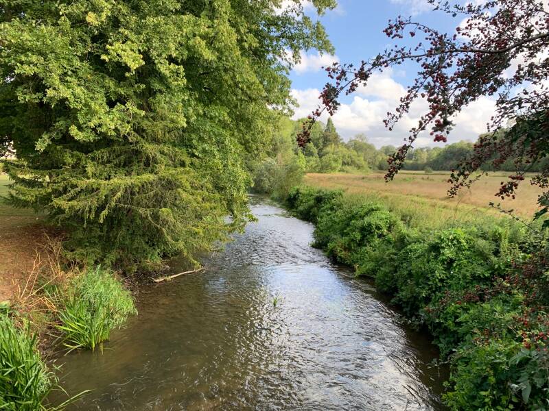 Start at the roundabout at the Shepherd and Flock pub (GU9 9JA), parking is roadside but do check the limits (4 hours usually). Pass the pub door and turn left at the bottom of the road. Follow this road-cum-track past the houses, under the A31 bridge and suddenly it feels like open country! Go under the railway bridge and stay on this route now for over half a mile. It’s a pleasant and varied walk past ponds with moorhens and ducks, fields, often with geese and sheep or horses, a brief encounter with the river Wey and some nice woodland alongside.