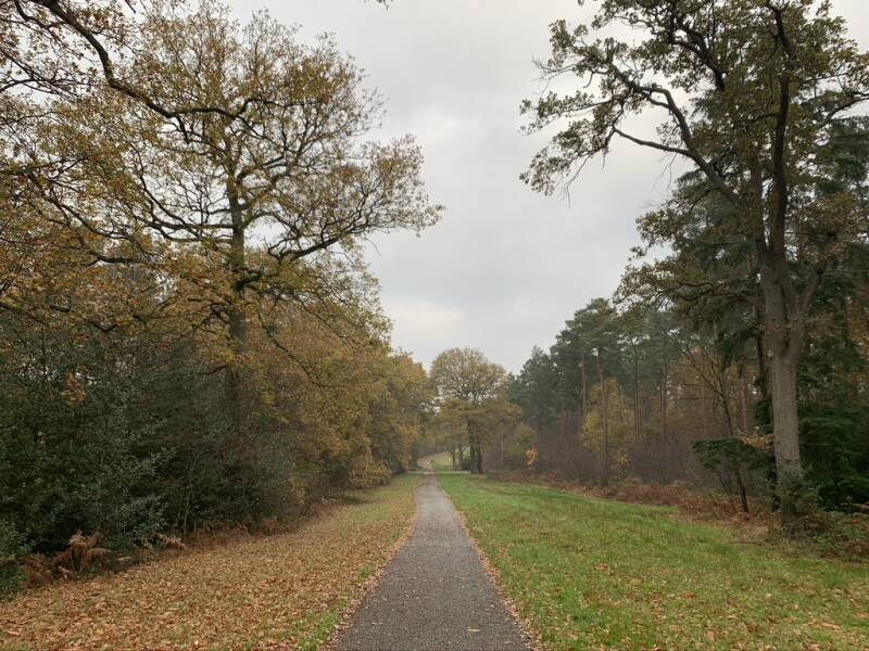 Soon, at the next crosstracks turn left, still on the wide Three Castles Path. Follow this for about 500 metres until you reach a big junction. You need to turn left here but not first left, instead enter the trees ahead of you, note a path coming from the right and you will see a second turning sharp left in the trees. Take this one and it stretches long and straight into the distance. This is almost the ‘home straight’!