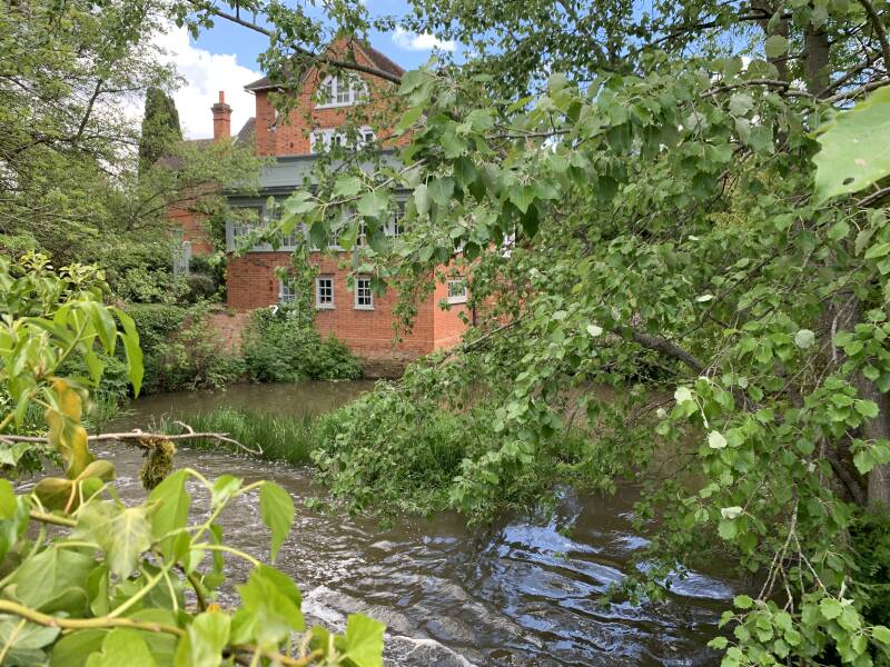 After stopping or admiring, turn left along the canal towpath past the private car park and lock. You have a lovely hedgerow of mature trees on your left and on the other side of the canal more golf course beyond the trees and hedgerow. Keep watching the canal as Kingfishers and Moorhens may be seen. Continuing along the towpath as it bends to the right, pass a bridge and about one hundred metres after take a footpath signposted on your left into the hedgerow. There may be diversion signs across a bridge via the golf course and back to the official footpath. Stay on this path enjoying the hedgerows until you finally emerge onto a vehicle track at Ockham Mill. Look with envy at the homes here but also enjoy the Mill Tail (stream) as it passes under the bridge. Follow the lane away from the buildings and look for the footpath on the left directly opposite another footpath appearing from the right.