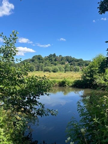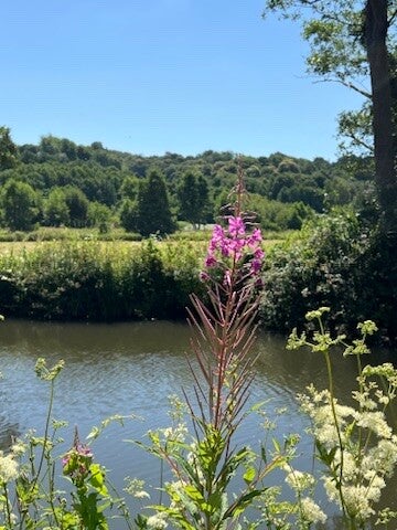 Leave Godalming station via the steps with the orange railings to the left of the bike storage area. Go to the entrance of the car park, turn left and look for the footpath on the right-hand side just after The Rectory. At the end of the path, cross the road, keeping very slightly left and join the footpath through the park. The river Wey and its water meadows are on your left. You will pass a meadow to your right has been left to allow wild flowers to grow. In July this is covered in meadowsweet flowers. The path along the riverside has many huge and beautiful willow trees.