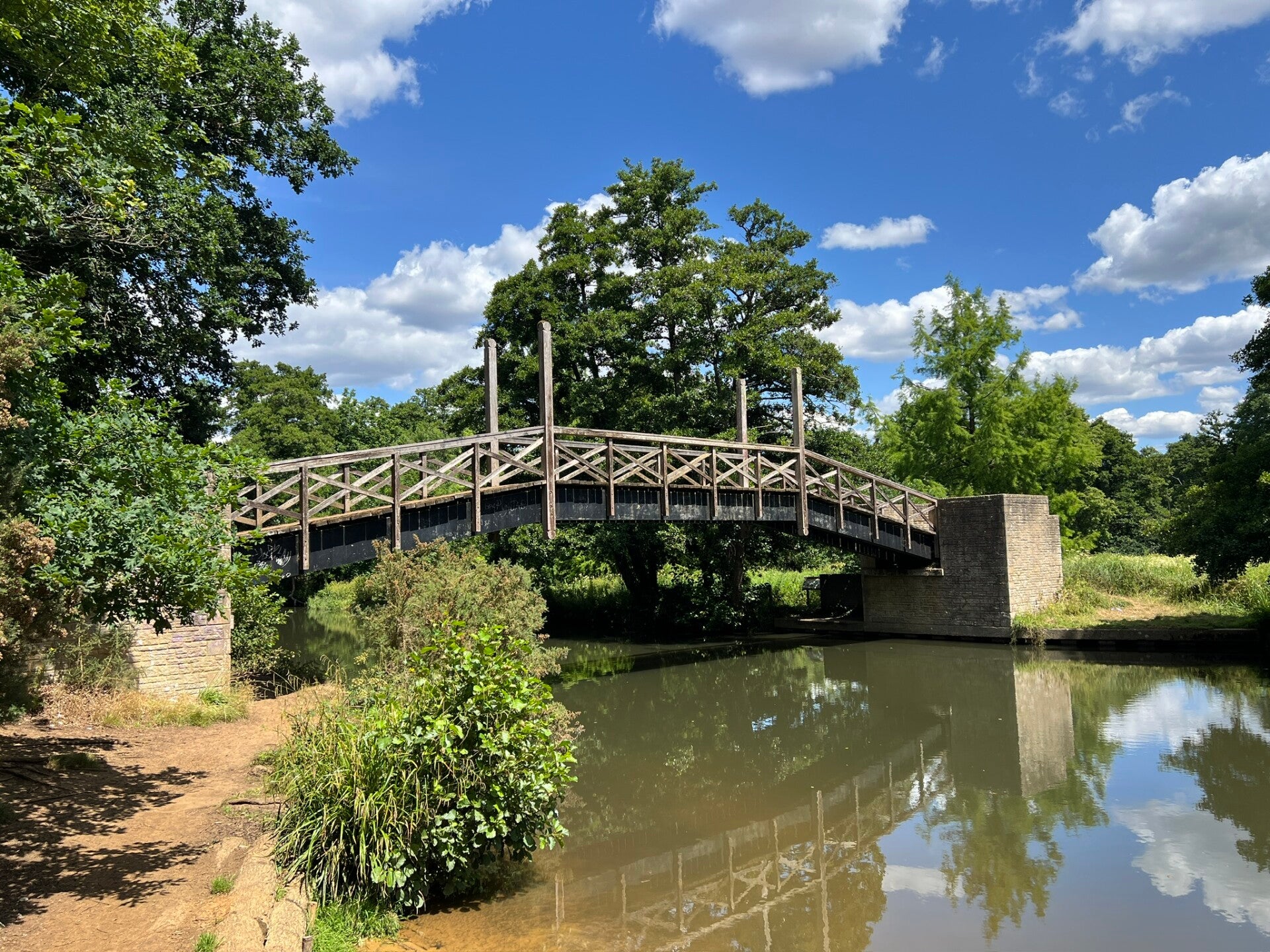 Keep going until you meet the road. Turn left over the bridge crossing to the other side and turn immediately right before the church buildings to rejoin the riverside path, now on the left of the river/canal. You have a choice here of taking the path through the meadows to the left (best in summertime) or continuing on the canal path. The meadows are full of wildlife, flowers, birds, butterflies and insects but will often flood in the winter months. As long as you stay on the meadow paths you will eventually rejoin the Canal bank (after crossing straight over one road).